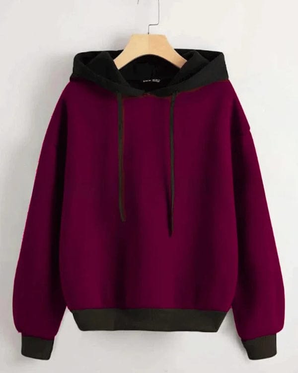 Maroon With Black Basic Kangaroo Hoodie ✅ Fabric: Fleece ✅ Soft & Comfortable ✅ Winter...